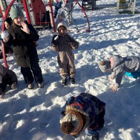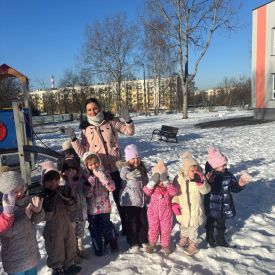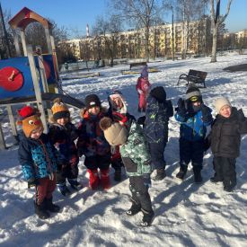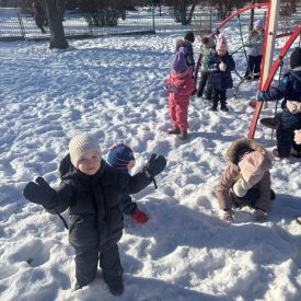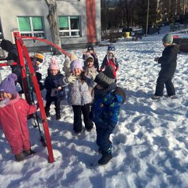 Grupa Stokrotek uczestniczyła w zimowym wyjściu na przedszkolny plac zabaw. Dzieci były odpowiednio ubrane do warunków pogodowych, co zapewniło im komfort i bezpieczeństwo podczas pobytu na świeżym powietrzu.Podczas zabawy dzieci korzystały z dostępnych sprzętów, spacerowały po placu oraz bawiły się śniegiem. Zimowa aura wzbudziła wiele radości i zaciekawienia – maluchy obserwowały otoczenie, zostawiały ślady na śniegu i wspólnie uczestniczyły w prostych zabawach ruchowych.Wyjście na plac zabaw sprzyjało rozwijaniu sprawności ruchowej, samodzielności oraz integracji w grupie. Pobyt na świeżym powietrzu miał również pozytywny wpływ na samopoczucie dzieci. Po zakończonej zabawie wszyscy wrócili do sali w dobrych nastrojach.