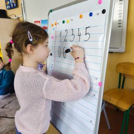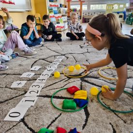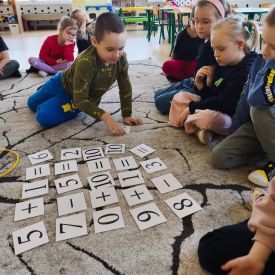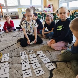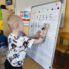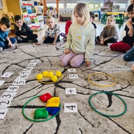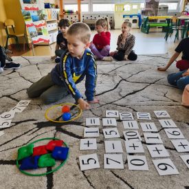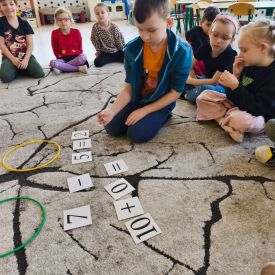 W grupie Tulipany odbyły się zajęcia matematyczne, podczas których dzieci doskonaliły swoje umiejętności liczenia, klasyfikowania oraz rozpoznawania liczb – zarówno w języku polskim, jak i angielskim. Przedszkolaki z dużym zaangażowaniem uczestniczyły w proponowanych aktywnościach, łącząc naukę matematyki z elementami edukacji językowej.