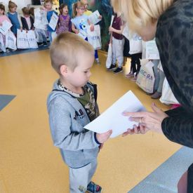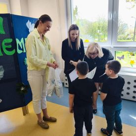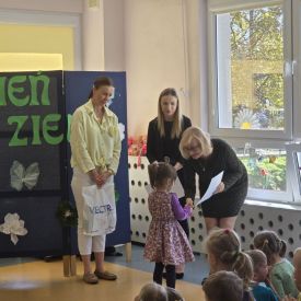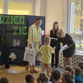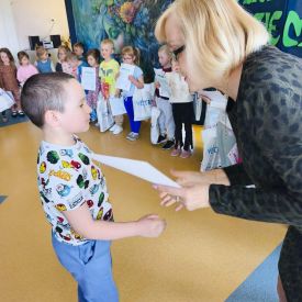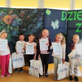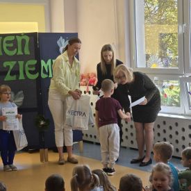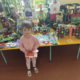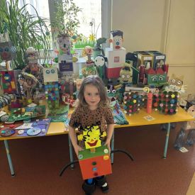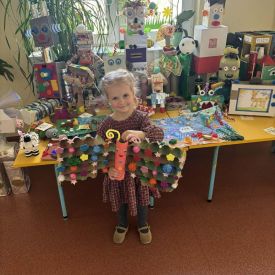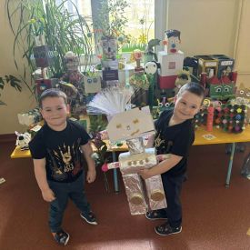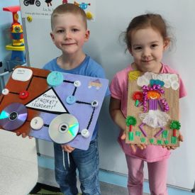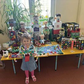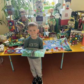 W naszym przedszkolu odbył się Rodzinny Konkurs Matematyczno–Ekologiczny „Geometryczne Cudaki”. Celem konkursu było rozwijanie wyobraźni, kreatywności oraz zwrócenie uwagi na możliwość ponownego wykorzystania materiałów z tworzyw sztucznych.
