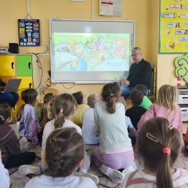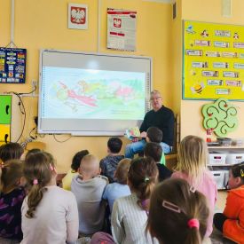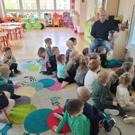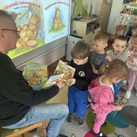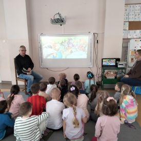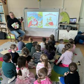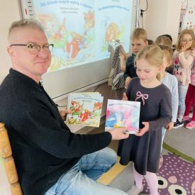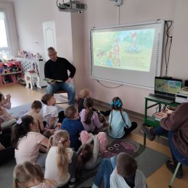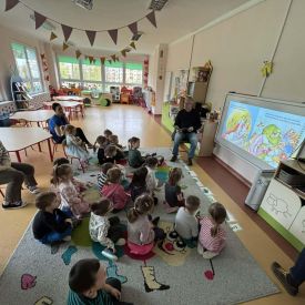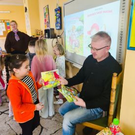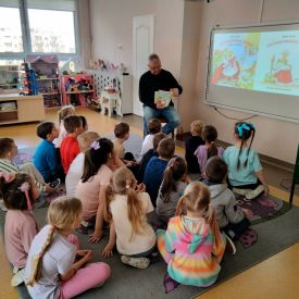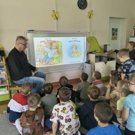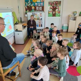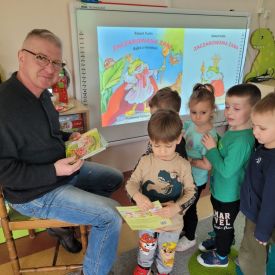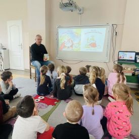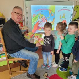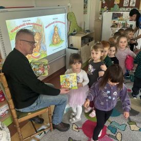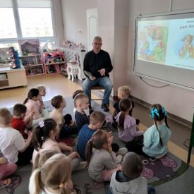 Po wspólnym czytaniu odbyła się rozmowa z dziećmi, podczas której autor zachęcał do refleksji nad przesłaniem przeczytanych historii oraz odpowiadał na pytania przedszkolaków.