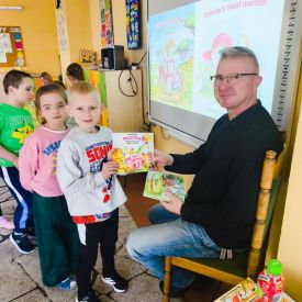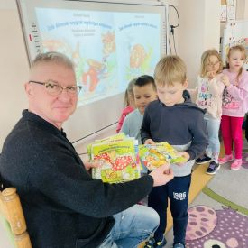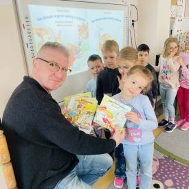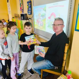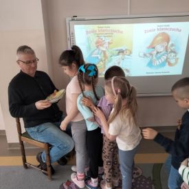 Na zakończenie spotkania każde dziecko otrzymało w prezencie książeczkę z autografem autora, co sprawiło wszystkim ogromną radość i było piękną pamiątką tego wyjątkowego dnia.
