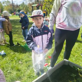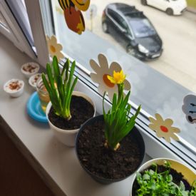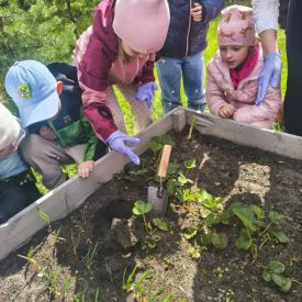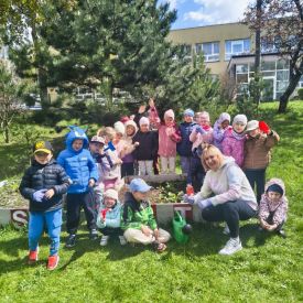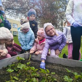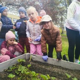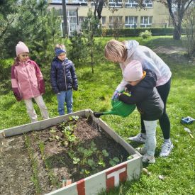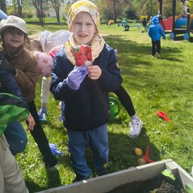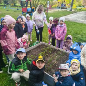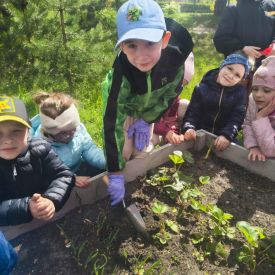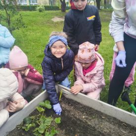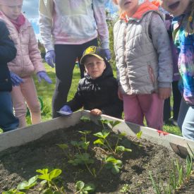 A kiedy tylko zaświeciło słońce, ruszyliśmy do naszego zewnętrznego ogródka. Pracy było co niemiara, ale Tulipany poradziły sobie śpiewająco. Nasze truskawki odetchnęły z ulgą, gdy pozbyliśmy się nieproszonych gości. Do ziemi trafiły cebulki, które już niedługo zamienią się w dorodny szczypior. Z wielką precyzją wysialiśmy rzędy: