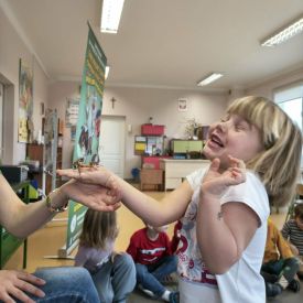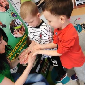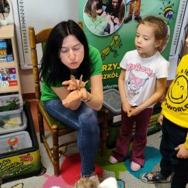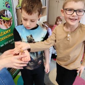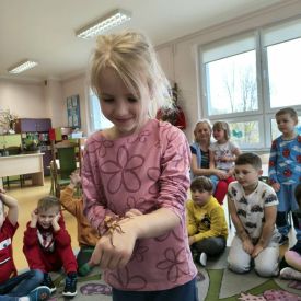 Największą atrakcją była możliwość zobaczenia niektórych okazów z bliska, a nawet ich dotknięcia! Dzieci przełamywały swoje obawy i z zaciekawieniem obserwowały prezentowane gatunki.