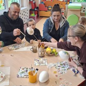 W naszym przedszkolu odbyły się wyjątkowe wielkanocne warsztaty plastyczne z udziałem rodziców dzieci z grupy „Fiołki”. Spotkanie zostało zorganizowane w ramach projektu „Rodzice w świecie przedszkolaków”.