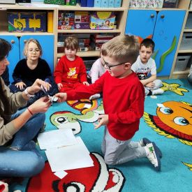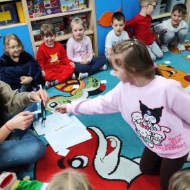 W naszej grupie odbyły się zajęcia logopedyczne prowadzone przez panią Dagmarę. Dzieci wysłuchały opowiadania pt. „Wiosna”, a następnie tworzyły zdania nawiązujące do jego treści.