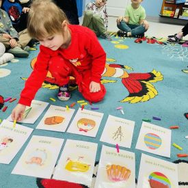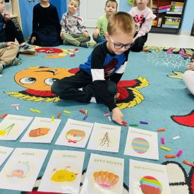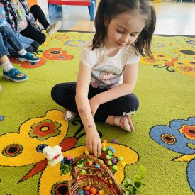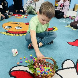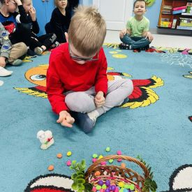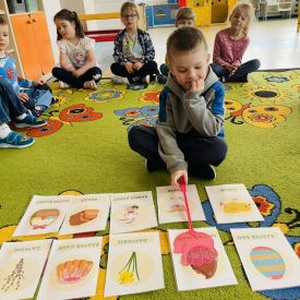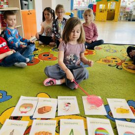 Podczas zajęć przedszkolaki poznawały słownictwo związane ze Świętami Wielkanocnymi, utrwalając je poprzez różnorodne zabawy i aktywności. Dzieci brały udział w zabawach językowych, ruchowych oraz dydaktycznych, które sprzyjały nauce poprzez działanie i wspólną zabawę. Nie zabrakło również elementów matematycznych. Przedszkolaki przeliczały elementy, porządkowały je według określonych cech oraz wykonywały proste zadania związane z tematyką świąteczną, jednocześnie posługując się poznanym słownictwem w języku angielskim. Różnorodne aktywności pozwoliły dzieciom utrwalać nowe słowa w naturalny i ciekawy sposób, a jednocześnie wprowadziły je w świąteczną atmosferę.