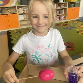 Na zakończenie przedszkolaki wykonały również pracę plastyczną "Easter egg”, podczas której mogły twórczo wykorzystać poznane słownictwo.